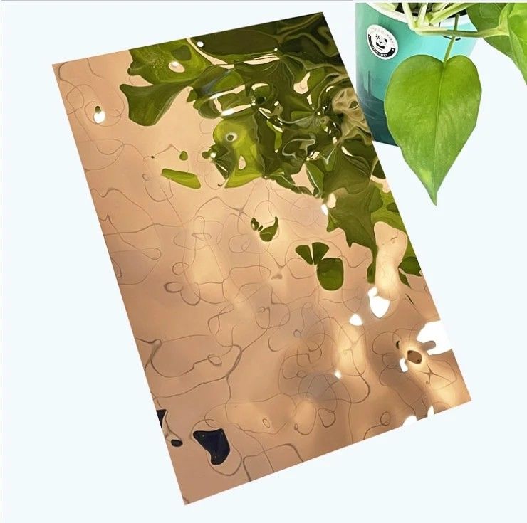 Discover the beauty of water ripple stainless steel, also known as water wave stainless steel. This unique material, based on the reflective properties of 8K mirror stainless steel, creates a stunning effect reminiscent of water wave patterns. Crafted through precision stamping, the smooth and uneven surface of the stainless steel plate captures the essence of flowing water.